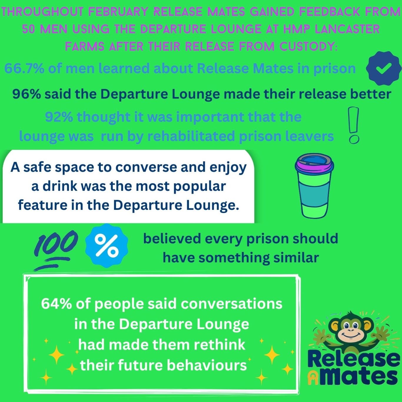 Release Mates Departure Lounges outside prisons offer practical support by way of providing necessities such as food and clothes, whilst offering the experience and knowledge of people who have navigated away from the revolving door of prisons to lead a meaningful life.